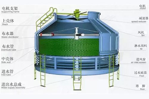冷卻塔原理:冷卻塔是由本體、集水盤、消音毯、蜂窩式散熱片、散水系統、擋水板、冷卻風扇、扶梯等組成。冷卻塔原理:是用需冷卻的水經散水系統散開,蜂窩式散熱片一方面將散水管來的水進一步散均勻,另一方面冷卻風